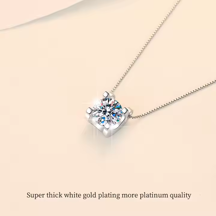 Glow with effortless glam in this 1 carat round cut VVS1 Moissanite necklace, beautifully set in S925 sterling silver π. Designed to dazzle, this fiery, diamond-like stone shines with clarity and brilliance that turns headsβday or night β¨. Whether you're dressing up or keeping it casual, this fashion-forward necklace is your new go-to sparkle. Hypoallergenic, lightweight, and certified to impressβbecause you deserve everyday luxury ππ«.