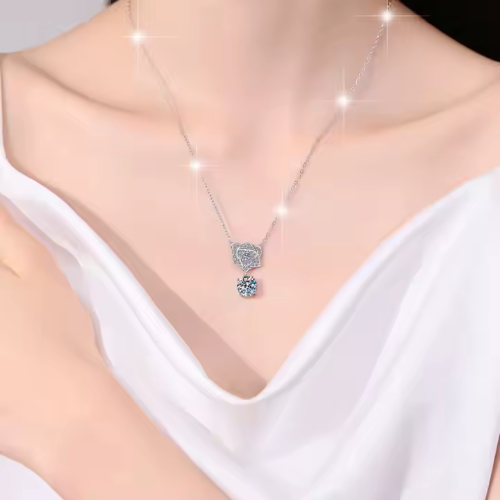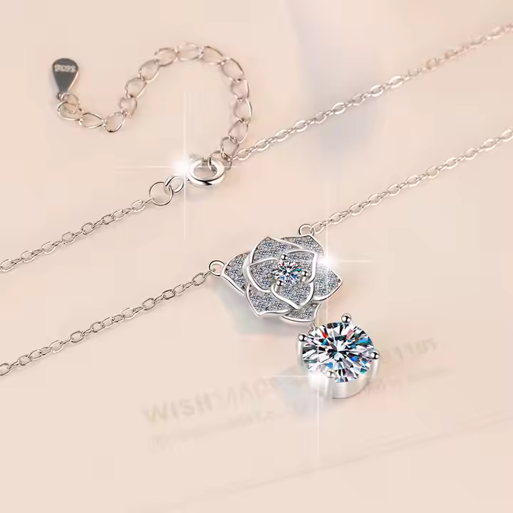 Delicate as a rose, powerful as loveβthis Heart Rose Petals Pendant Necklace features a sparkling 1Ct or 2Ct VVS1 Moissanite nestled within a blooming floral heart design πΈ. Crafted from 925 sterling silver, it captures the essence of romance and nature in perfect harmony. The intricate rose petal detailing surrounds the diamond-like brilliance of the Moissanite, creating a timeless piece thatβs both feminine and full of meaning π. Lightweight, hypoallergenic, and unforgettableβit's the perfect gift for someone who blossoms with grace πΉβ¨