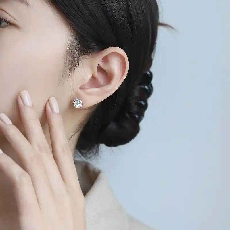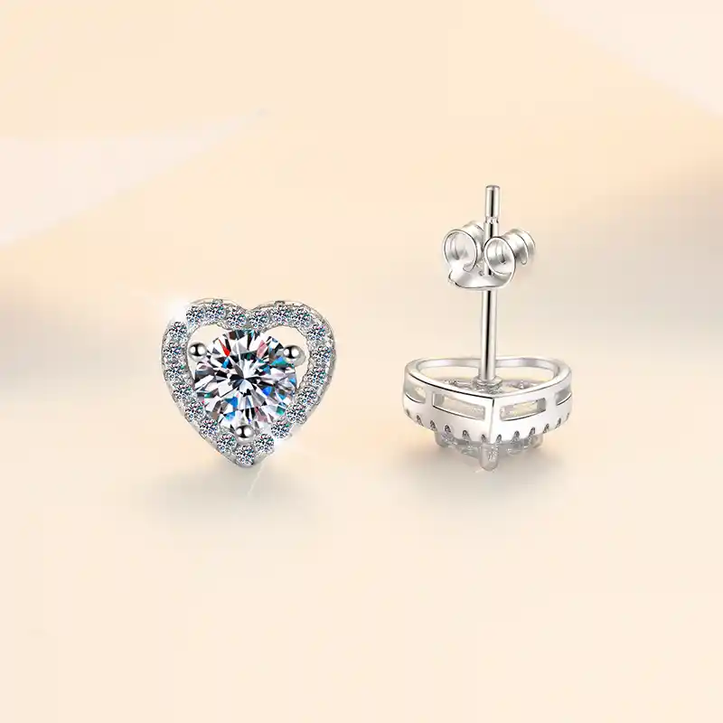 Add romance to every moment with these heart-shaped stud earrings, each featuring a brilliant round cut VVS1 Moissanite that sparkles like a diamond 💖. Expertly crafted in S925 sterling silver, these timeless earrings are designed for elegance and everyday comfort. Perfect as a wedding, engagement, or anniversary gift, they’re a beautiful way to show love for that special woman in your life ✨.