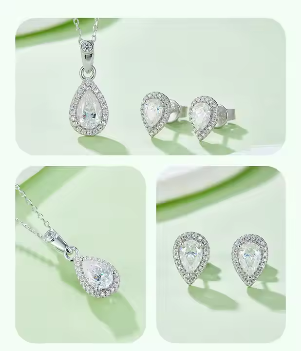 π«Turn heads with this 1Ct Pear Cut Moissanite Jewelry Set, featuring a stunning water drop-shaped necklace and matching earrings, all crafted in high-quality S925 sterling silver π. Each VVVs1-grade certified created diamond simulant offers exceptional brillianceβdelivering the fire and sparkle of real diamonds without the environmental impact π. This affordable and sustainable jewelry set is ideal for weddings, anniversaries, or elegant gifts for her. Lightweight, hypoallergenic, and consciously crafted, it's perfect for those who love to shine with style and purpose β¨π.