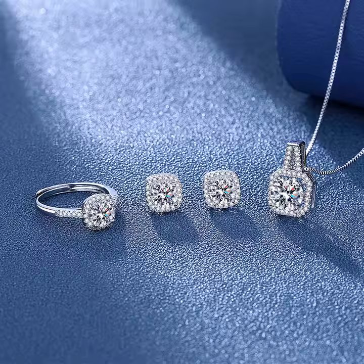 π«Elevate your elegance with this stunning Square Moissanite 4-piece Jewelry Set, featuring a perfectly matched bracelet, necklace, stud earrings, and ring π. Each piece is crafted from 925 sterling silver and adorned with brilliant square-cut VVS1 Moissanite stones that shimmer like real diamonds π. Perfect for weddings, anniversaries, or luxurious gifting, this set is hypoallergenic, timeless, and designed to bring effortless sparkle to every occasion β¨π«.